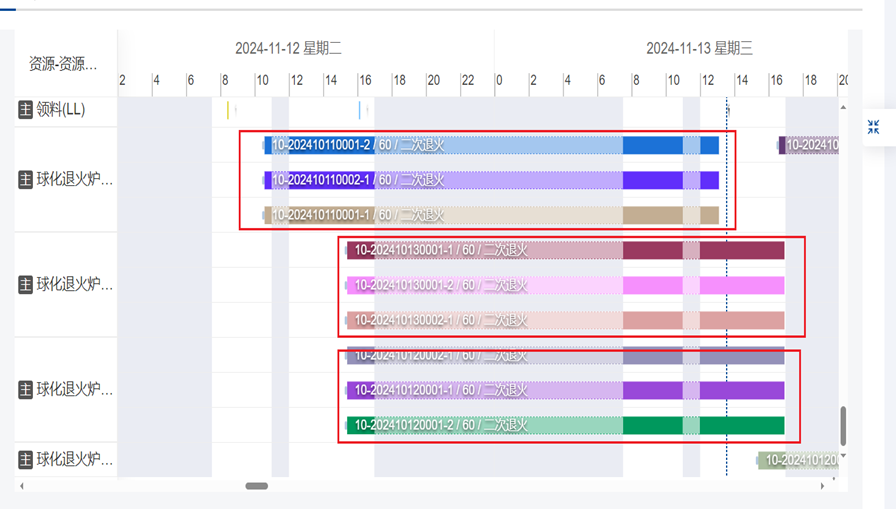 - 自动合炉排产:充分考虑冷锻工序的需求关系、产品尺寸、产品工艺要求、炉容量等因素,通过合炉算法产生合炉方案,再进行炉排产;